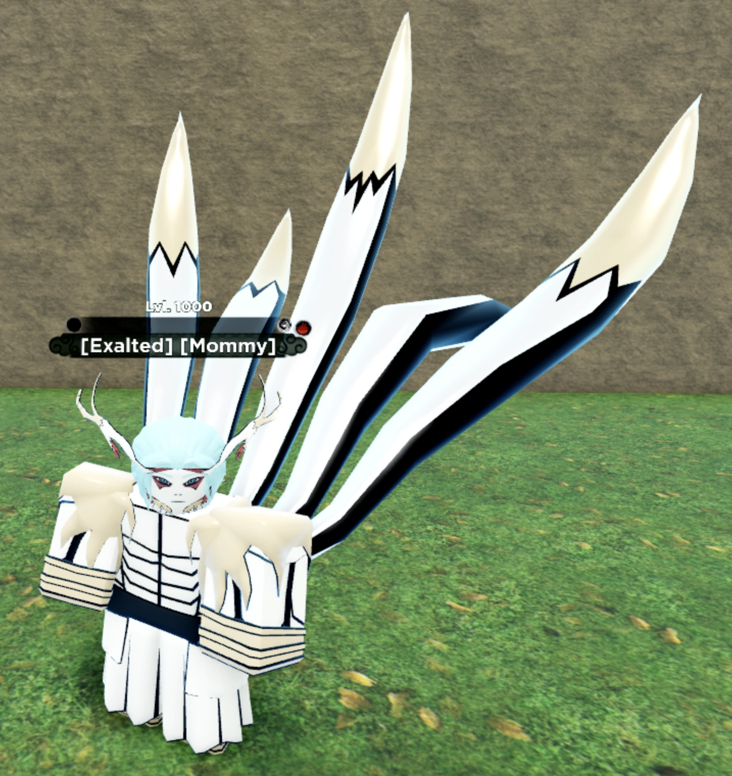 For Stage 4 of Mustang Spirit, the user gains the jaw-like structure on the bottom-left of their head, and they gain the tails of the Mustang Spirit behind them, which resemble long white tails with tan ends and black fur running along the sides of them.